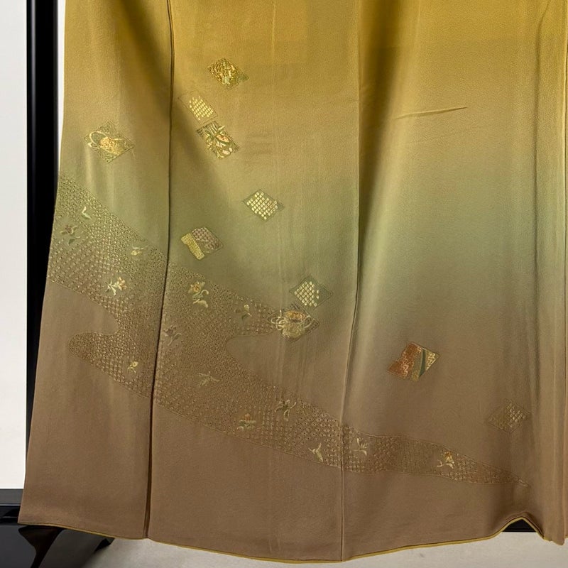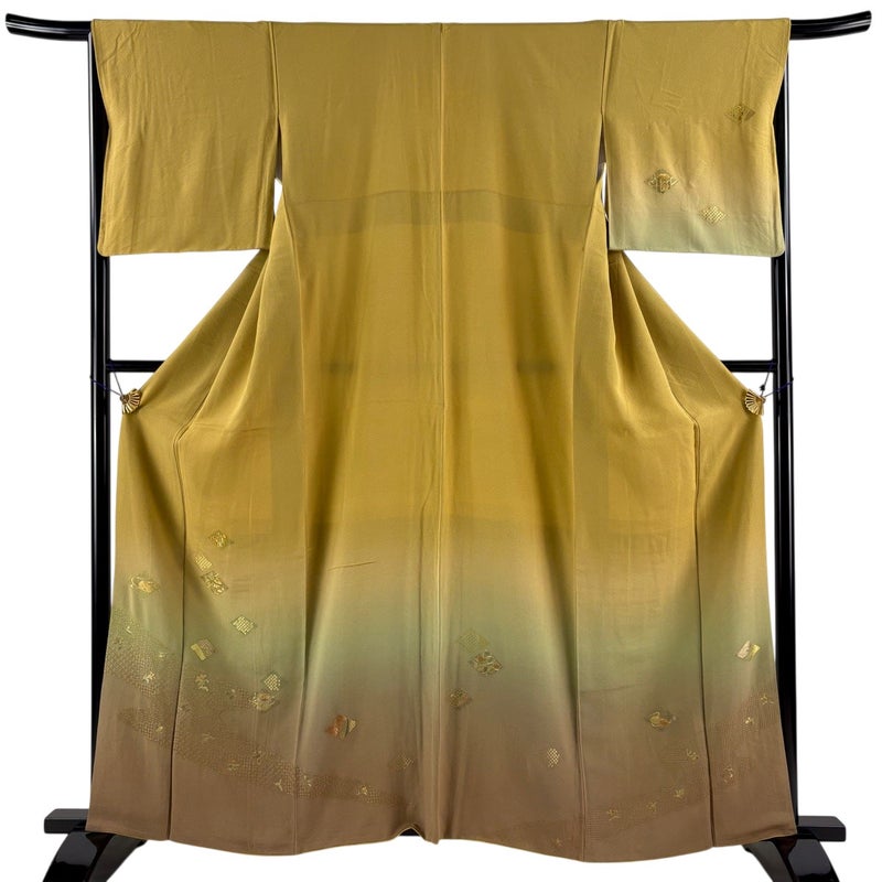 【付下げ】 黄色系 からし色 秀品 B 約160cm~約169cm 裄丈66cm (M)size 袖丈48cm 4000-7980 二万以下