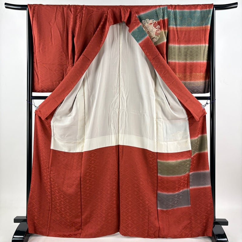【付下げ】 赤系 茜色 秀品 B 約160cm~約169cm 裄丈67cm-68cm (L)size 袖丈61cm~90cm 4000-7980 二万以下