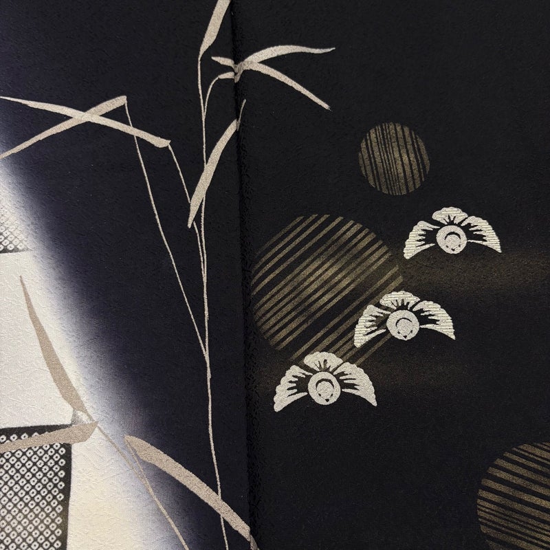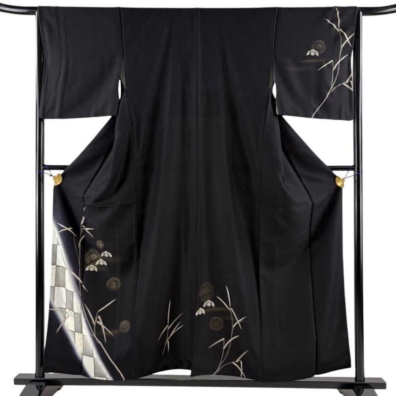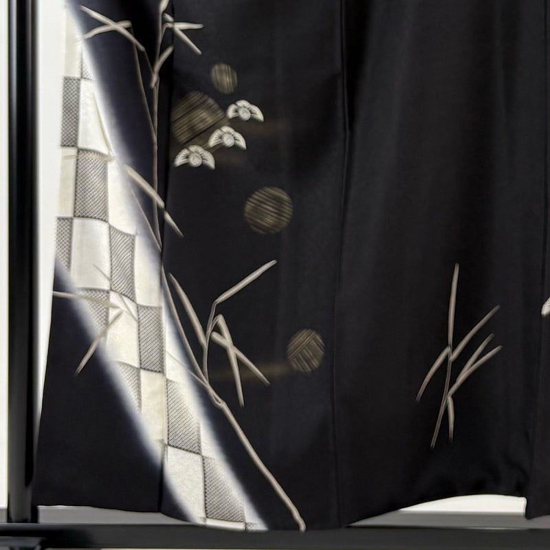 【付下げ】 黒系 黒 秀品 A 約150cm~約159cm 裄丈65cm (M)size 袖丈49cm 7990-9980 美品 二万以下