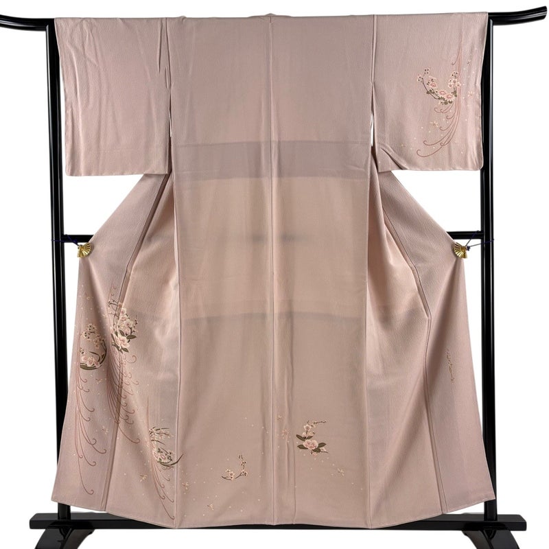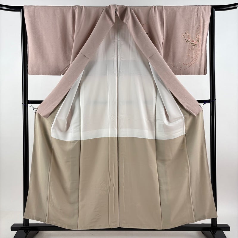【付下げ】 赤系 ピンクベージュ 秀品 B 約150cm~約159cm 裄丈63cm-64cm (M)size 袖丈49cm 4000-7980 二万以下