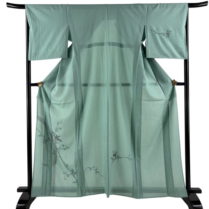 【付下げ】 緑系 薄緑 秀品 A 約160cm~約169cm 裄丈66cm (M)size 袖丈48cm 9990-29990 美品 二万以下