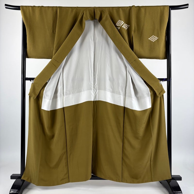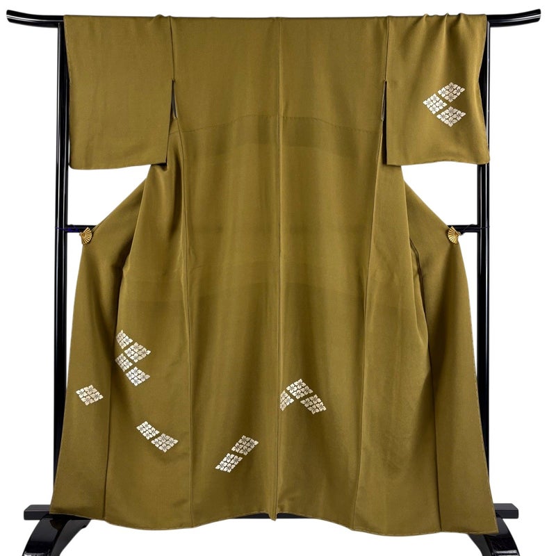 【着物ランク】秀品 【素材】正絹 【身丈】約159.5cm 【裄丈】約67cm 【袖丈】約48.5cm 【袖幅】約33cm 【前幅】約27cm 【後幅】約32cm 【サイズ】M 【着物仕立て】袷 【着用時期】10~5月 【状態ランク】ランクB 【着物着用シーン】披露宴、パーティー、式典、食事会、お茶会、正月