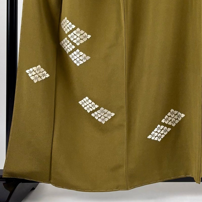 【付下げ】 茶系 茶緑色 秀品 B 約150cm~約159cm 裄丈67cm-68cm (M)size 袖丈48cm 4000-7980 二万以下