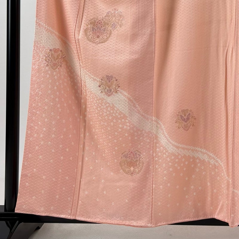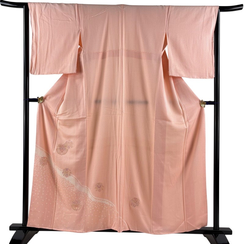 【付下げ】 赤系 サーモンピンク 秀品 A 約150cm~約159cm 裄丈65cm (M)size 袖丈50cm-60cm 7990-9980 美品 二万以下