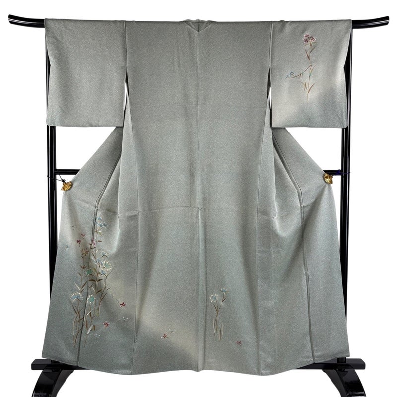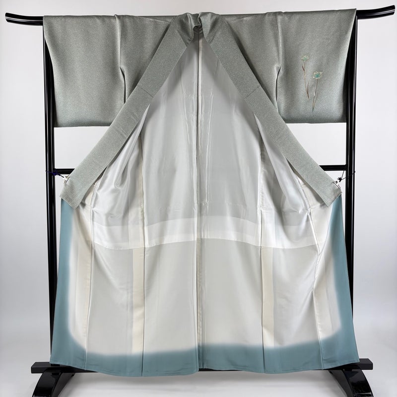 【付下げ】 灰色系 灰緑 秀品 B 約150cm~約159cm 裄丈66cm (M)size 袖丈48cm 4000-7980 二万以下