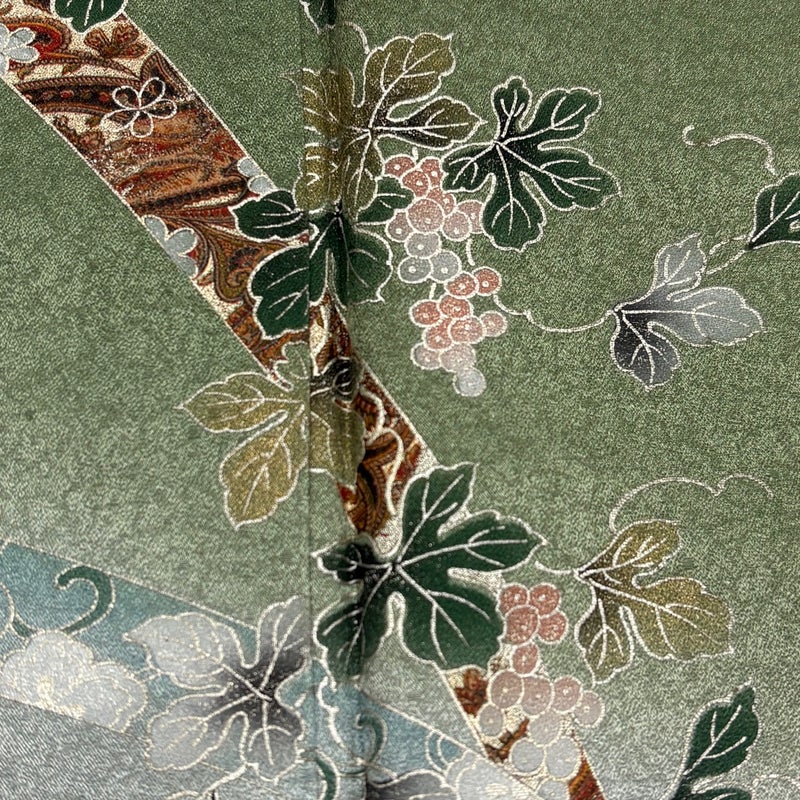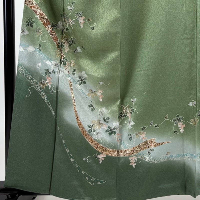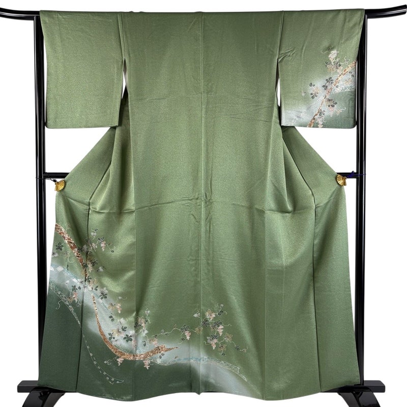 【付下げ】 緑系 よもぎ色 秀品 C 約150cm~約159cm 裄丈65cm (M)size 袖丈48cm 4000-7980 二万以下