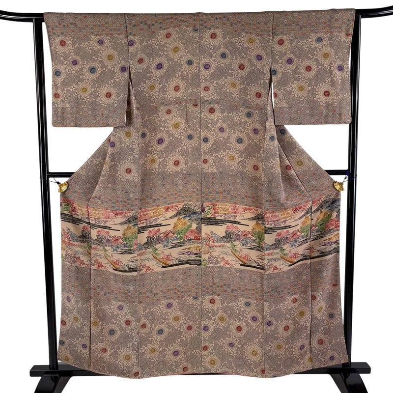 【着物ランク】秀品 【素材】正絹 【身丈】約158cm 【裄丈】約64.5cm 【袖丈】約47.5cm 【袖幅】約33cm 【前幅】約22.5cm 【後幅】約28.5cm 【サイズ】M 【着物仕立て】袷 【着用時期】10~5月 【状態ランク】ランクB 【着物着用シーン】披露宴、パーティー、式典、食事会、お茶会、正月