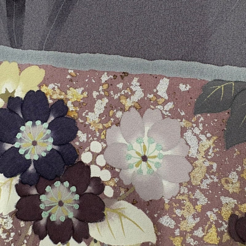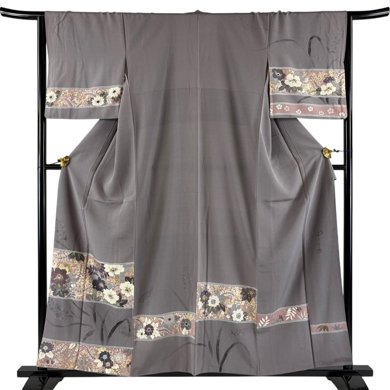 【付下げ】 灰色系 灰紫 秀品 B 約150cm~約159cm 裄丈63cm-64cm (M)size 袖丈47cm 4000-7980 二万以下