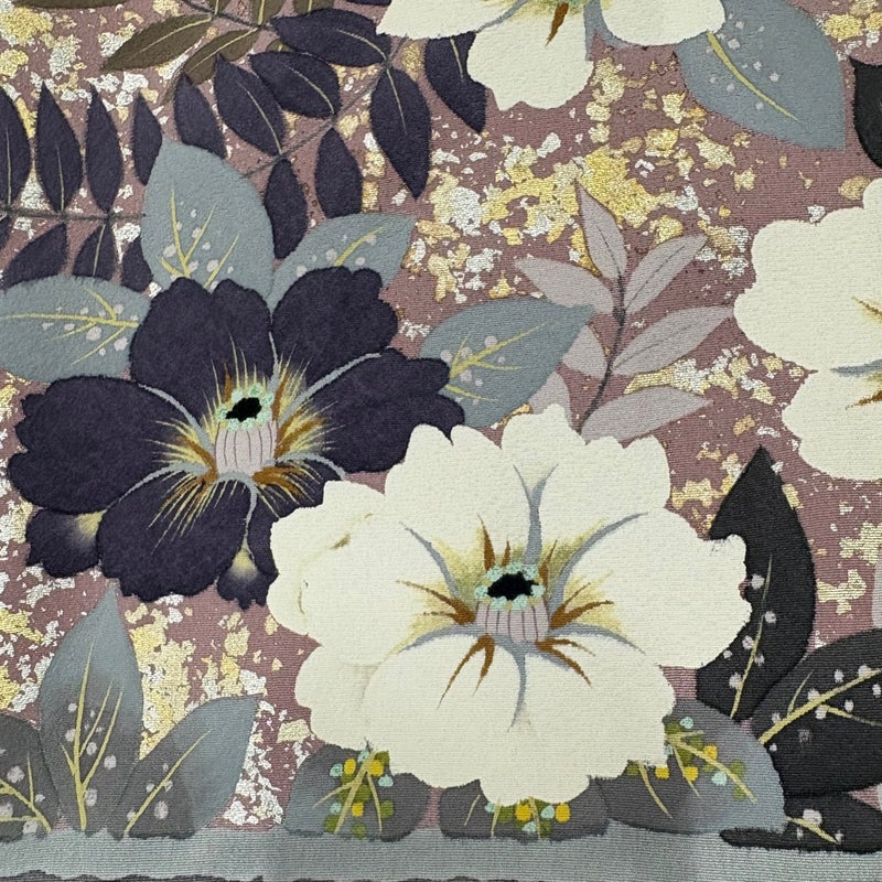 渡辺花鳥園の創業者、清次郎を継いだ二代目清次郎の作品です。 合わせる帯の色柄により、お召しいただく席を選べる付下げです。 帯により印象を変える事の出来る印象のお着物は、様々に活躍してくれることでしょう。 ※身丈・裄丈の縫込みの長さは測っておりません。 表地所々にヤケ、右前袖に薄いシミ、上前に点シミ、表地所々に金銀彩の変色がございます。 八掛所々にヤケ、八掛に糸つれがございます。 リユース品としては良い状態で、まだまだご活用頂けると思われます。 ※なお、厳しく商品の状態確認を行っておりますが、記載の汚れ以外にも見落とし箇所がある可能性がある旨ご了承いただけますと幸いです。 沢山の商品の中からご覧いただき誠にありがとうございます。