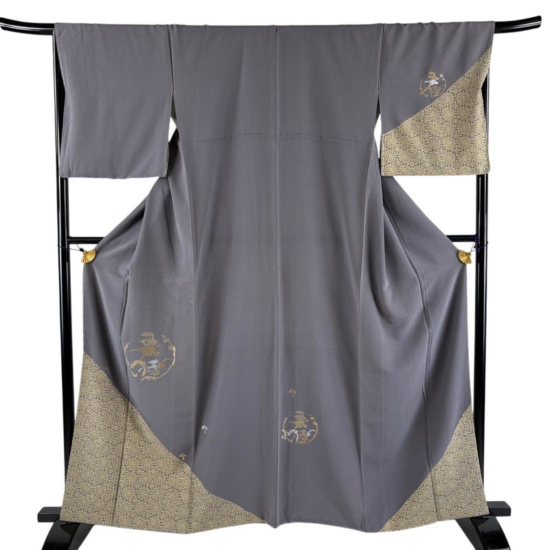 【着物ランク】秀品 【素材】正絹 【身丈】約160cm 【裄丈】約67.5cm 【袖丈】約49cm 【袖幅】約34cm 【前幅】約25cm 【後幅】約30cm 【サイズ】L 【着物仕立て】袷 【着用時期】10~5月 【状態ランク】ランクB 【着物着用シーン】披露宴、パーティー、式典、食事会、お茶会、正月