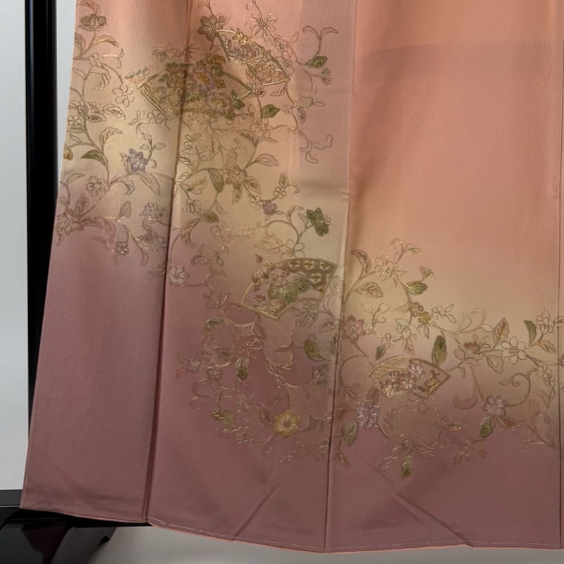 【付下げ】 赤系 サーモンピンク 秀品 A 約160cm~約169cm 裄丈63cm-64cm (S)size 袖丈49cm 7990-9980 美品 二万以下