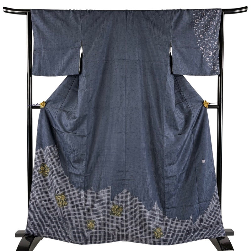 【付下げ】 青系 紺色 秀品 A 約160cm~約169cm 裄丈65cm (M)size 袖丈47cm 7990-9980 美品 二万以下