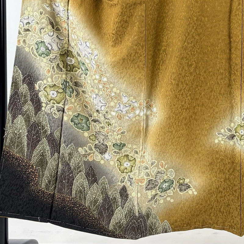 【付下げ】 黄色系 山吹茶色 秀品 A 約150cm~約159cm 裄丈63cm-64cm (S)size 袖丈48cm 7990-9980 美品 二万以下