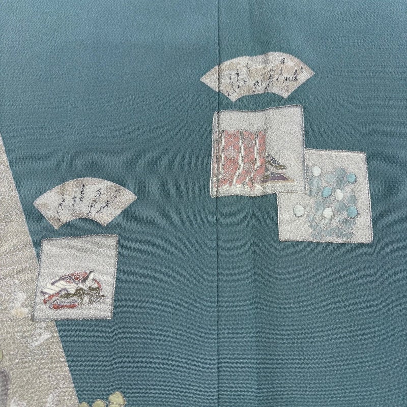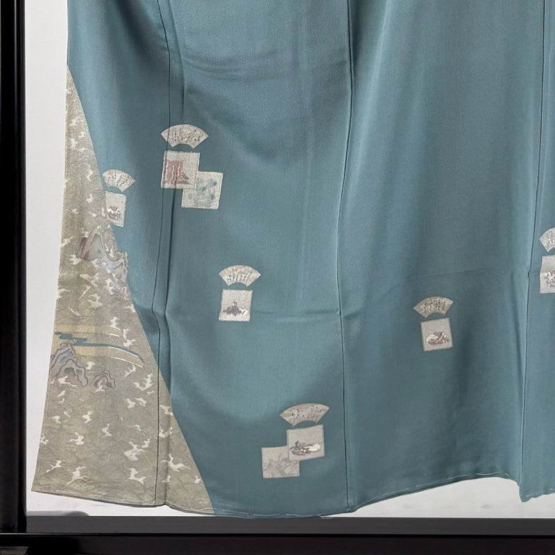 【付下げ】 緑系 緑 秀品 B 約150cm~約159cm 裄丈63cm-64cm (M)size 袖丈47cm 4000-7980 二万以下