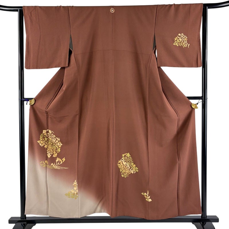 【付下げ】 茶系 茶色 秀品 B 約150cm~約159cm 裄丈63cm-64cm (M)size 袖丈47cm 4000-7980 二万以下