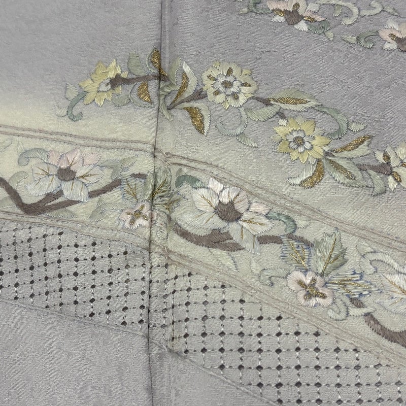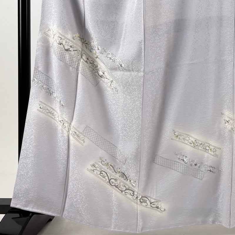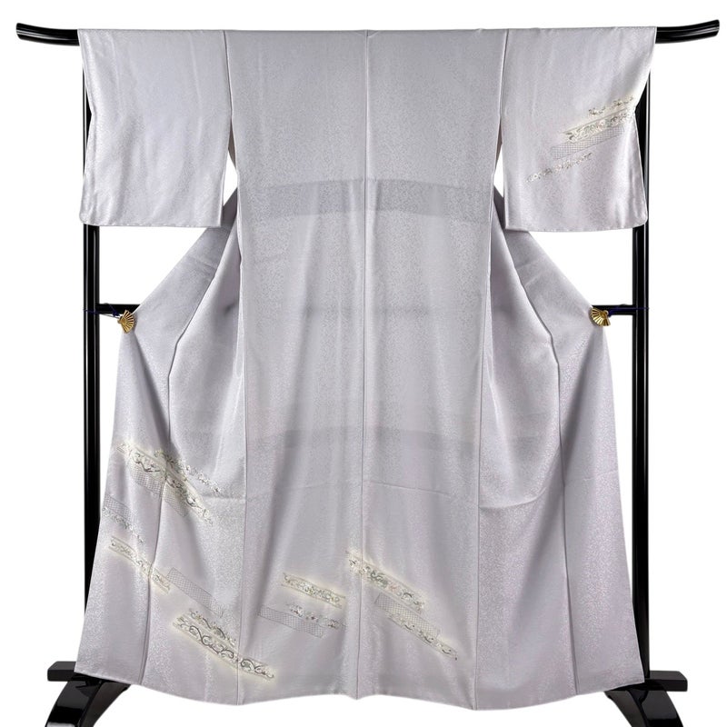 【着物ランク】名品 【素材】正絹 【身丈】約161.5cm 【裄丈】約67cm 【袖丈】約49cm 【袖幅】約34cm 【前幅】約24.5cm 【後幅】約30cm 【サイズ】M 【着物仕立て】袷 【着用時期】10~5月 【状態ランク】ランクB 【着物着用シーン】披露宴、パーティー、式典、食事会、お茶会、正月