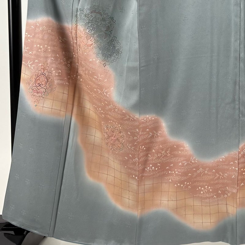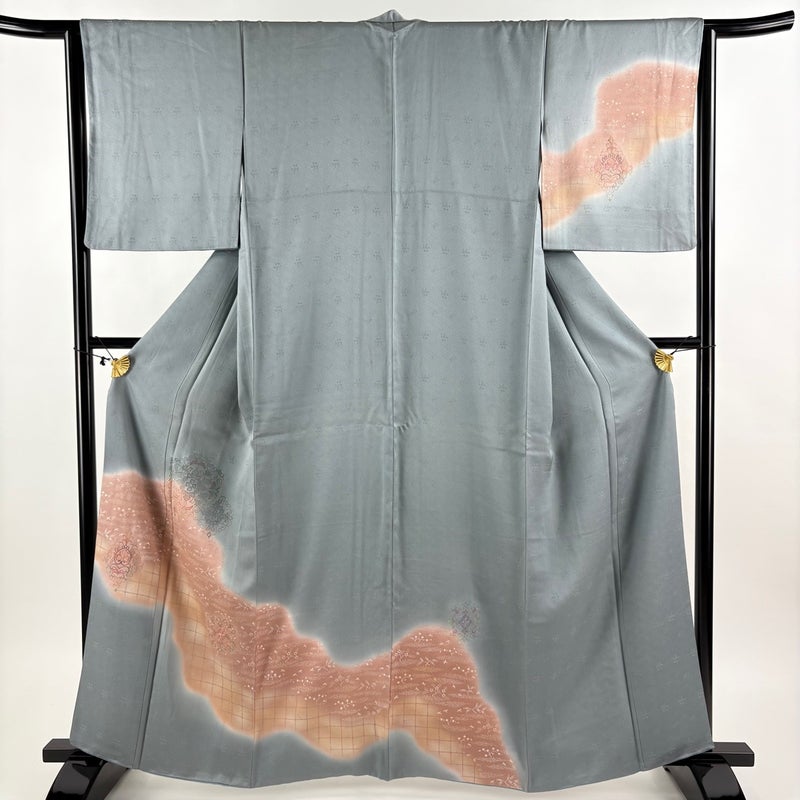 【付下げ】 灰色系 青灰色 秀品 C 約160cm~約169cm 裄丈63cm-64cm (M)size 袖丈49cm 4000-7980 二万以下