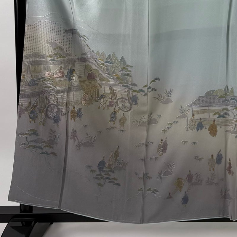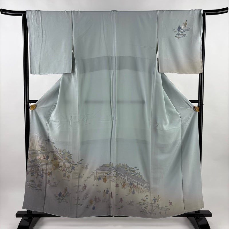 【付下げ】 青系 水色 秀品 B 約150cm~約159cm 裄丈63cm-64cm (M)size 袖丈47cm 4000-7980 二万以下