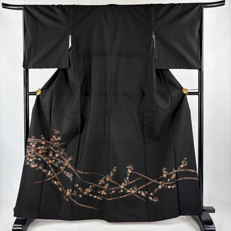 【付下げ】 黒系 墨色 名品 B 約160cm~約169cm 裄丈66cm (M)size 袖丈50cm-60cm 9990-29990 二万以下