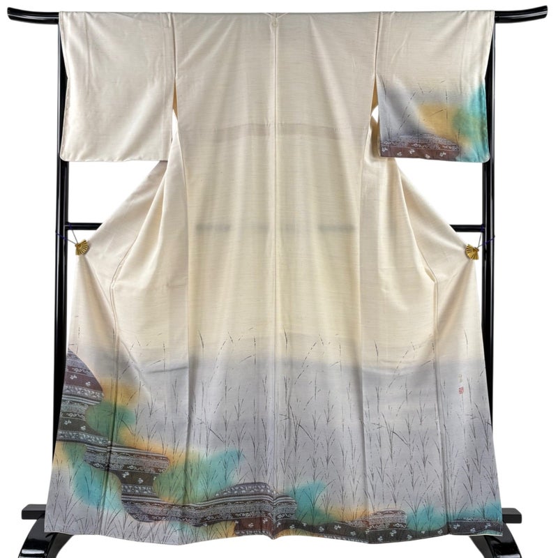 【付下げ】 白系 クリーム 名品 A 約160cm~約169cm 裄丈66cm (M)size 袖丈49cm 9990-29990 美品 二万以下