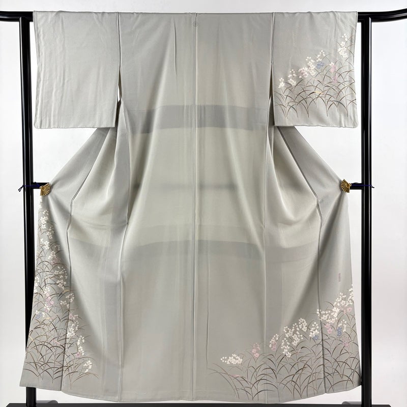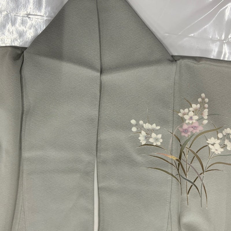 【付下げ】 灰色系 灰緑 秀品 A 約150cm~約159cm 裄丈62cm以下 (S)size 袖丈46cm以下 7990-9980 美品 二万以下