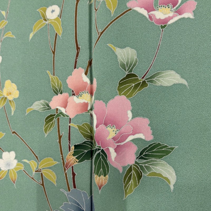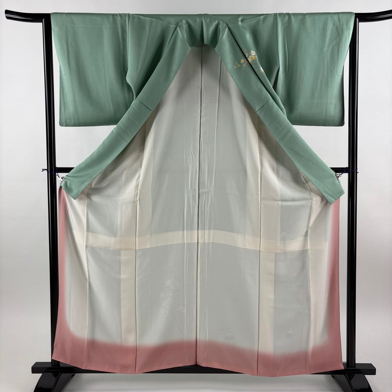 【付下げ】 緑系 薄緑 秀品 B 約160cm~約169cm 裄丈63cm-64cm (M)size 袖丈49cm 4000-7980 二万以下