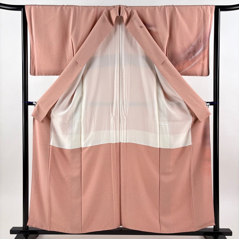【付下げ】 赤系 ピンクベージュ 秀品 B 約150cm~約159cm 裄丈63cm-64cm (S)size 袖丈49cm 4000-7980 二万以下