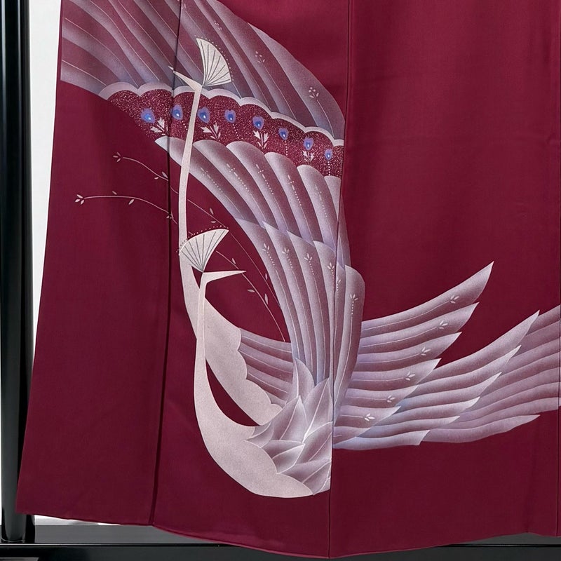 【着物ランク】優品 【素材】正絹 【身丈】約155.5cm 【裄丈】約64cm 【袖丈】約49.5cm 【袖幅】約34cm 【前幅】約22cm 【後幅】約28cm 【サイズ】M 【着物仕立て】袷 【着用時期】10~5月 【状態ランク】ランクB 【着物着用シーン】披露宴、パーティー、式典、食事会、お茶会、正月