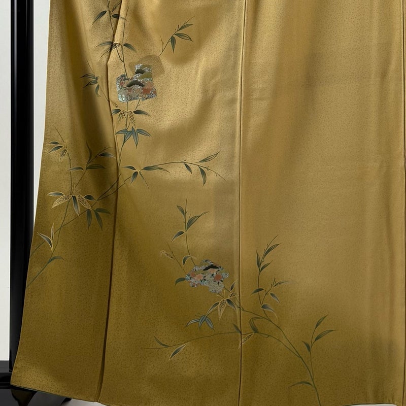 【付下げ】 黄色系 薄黄土色 秀品 B 約160cm~約169cm 裄丈65cm (M)size 袖丈50cm-60cm 4000-7980 二万以下