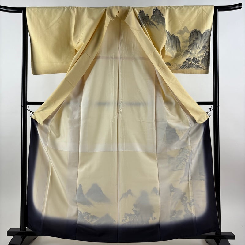 【付下げ】 黄色系 薄黄 秀品 B 約160cm~約169cm 裄丈63cm-64cm (S)size 袖丈47cm 4000-7980 二万以下
