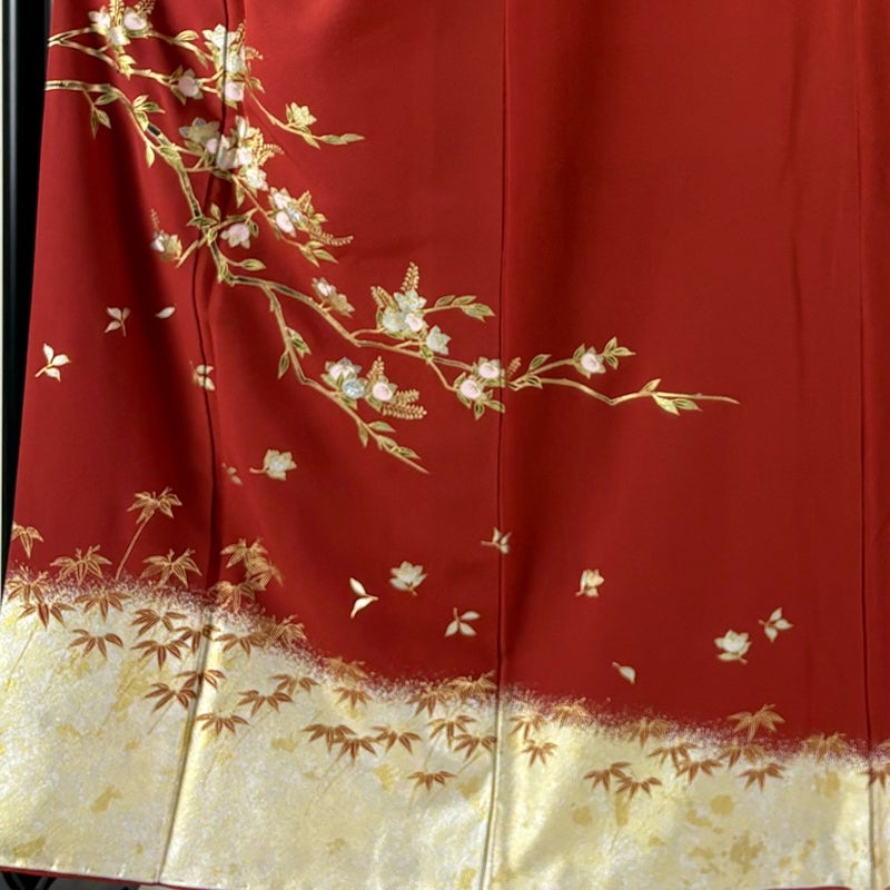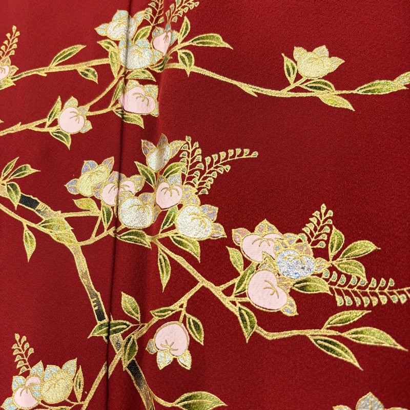 【着物ランク】秀品 【素材】正絹 【身丈】約162cm 【裄丈】約69cm 【袖丈】約53cm 【袖幅】約34.5cm 【前幅】約25cm 【後幅】約30.5cm 【サイズ】L 【着物仕立て】袷 【着用時期】10~5月 【状態ランク】ランクA 【着物着用シーン】披露宴、パーティー、式典、食事会、お茶会、正月