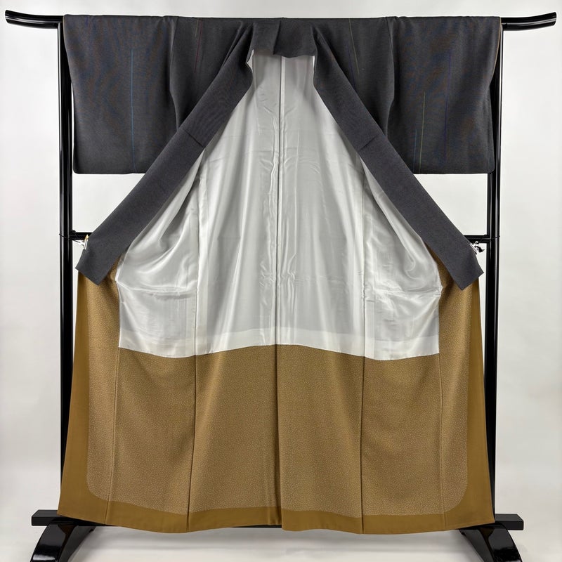 【付下げ】 灰色系 黒灰 秀品 B 約160cm~約169cm 裄丈65cm (M)size 袖丈48cm 4000-7980 二万以下