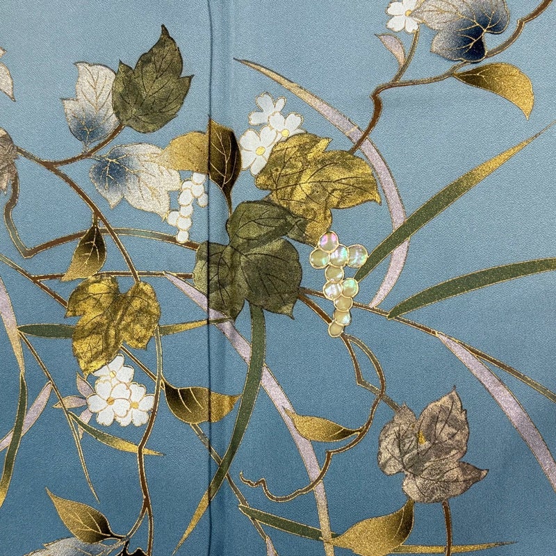 合わせる帯の色柄により、お召しいただく席を選べる付下げです。 帯により印象を変える事の出来る印象のお着物は、様々に活躍してくれることでしょう。 ※身丈・裄丈の縫込みの長さは測っておりません。 表地所々にヤケ、下前に薄いシミ、衿周りや両袖口中に汚れ、表地所々に金銀彩の変色、胴裏の左後袖付けに補修跡がございます。 八掛にヤケ、胴裏背中心に汗シミ、胴裏に補修跡がございます。 ご購入の際はその点ご留意ください。 ※なお、厳しく商品の状態確認を行っておりますが、記載の汚れ以外にも見落とし箇所がある可能性がある旨ご了承いただけますと幸いです。 沢山の商品の中からご覧いただき誠にありがとうございます。