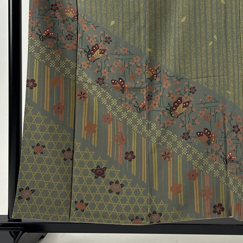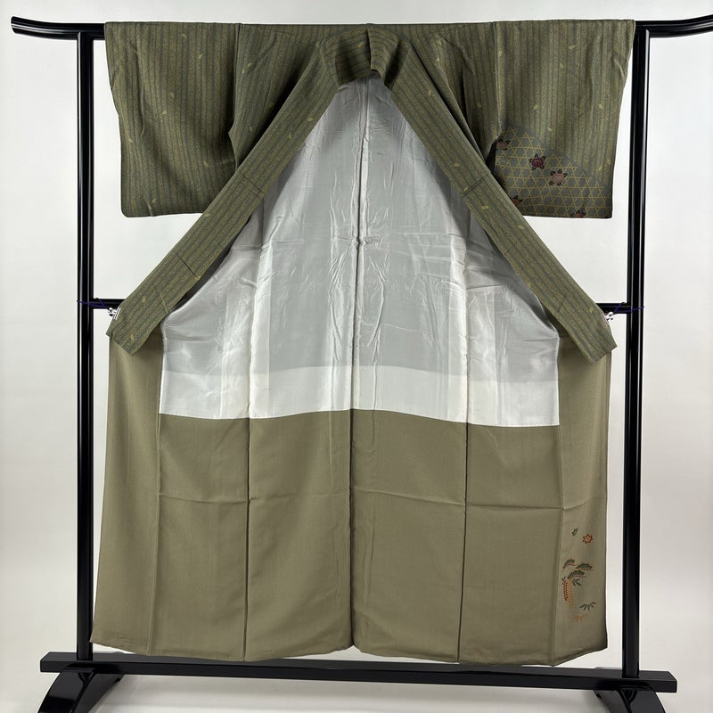 【付下げ】 茶系 茶緑色 秀品 B 約150cm~約159cm 裄丈62cm以下 (S)size 袖丈46cm以下 4000-7980 二万以下