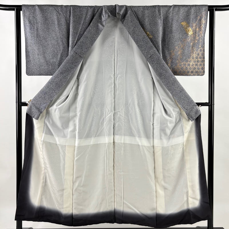 【付下げ】 灰色系 黒灰 秀品 A 約150cm~約159cm 裄丈62cm以下 (S)size 袖丈47cm 9990-29990 美品 二万以下