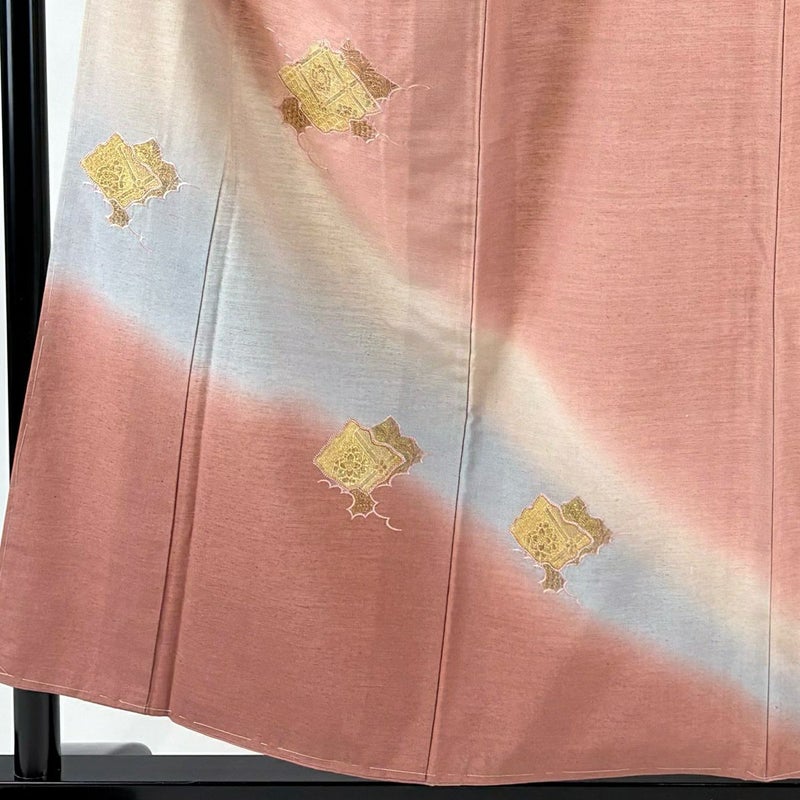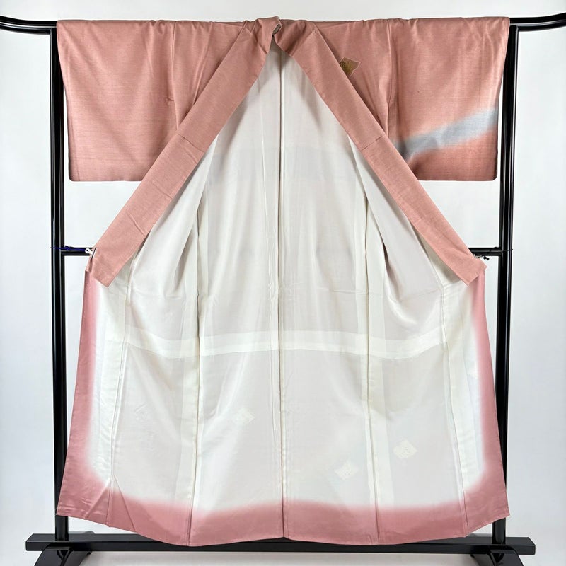 【付下げ】 赤系 ピンクベージュ 秀品 C 約150cm~約159cm 裄丈63cm-64cm (M)size 袖丈47cm 4000-7980 二万以下