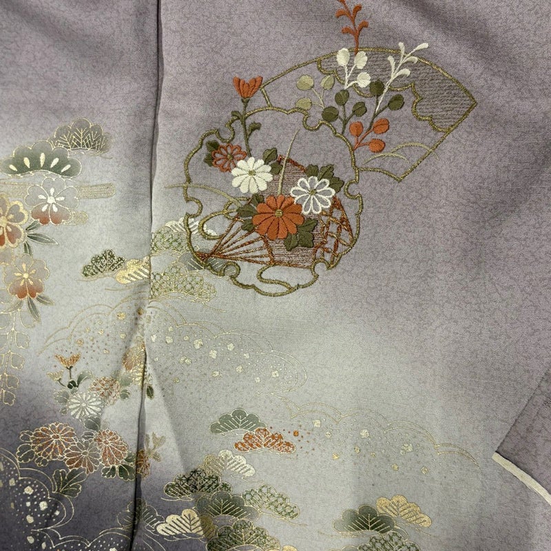 合わせる帯の色柄により、お召しいただく席を選べる付下げです。 帯により印象を変える事の出来る印象のお着物は、様々に活躍してくれることでしょう。 ※身丈・裄丈の縫込みの長さは測っておりません。 表地所々にヤケ、衿周りや両袖口中に汚れ、表地所々にシワ、左前袖に刺繍糸のゆるみ、表地所々に金銀彩の剥がれ、表地所々に金糸の変色がございます。 裏地所々に黄変、裏地両脇と胴裏背中に薄い汗シミがございます。 ご購入の際はその点ご留意ください。 ※なお、厳しく商品の状態確認を行っておりますが、記載の汚れ以外にも見落とし箇所がある可能性がある旨ご了承いただけますと幸いです。 沢山の商品の中からご覧いただき誠にありがとうございます。
