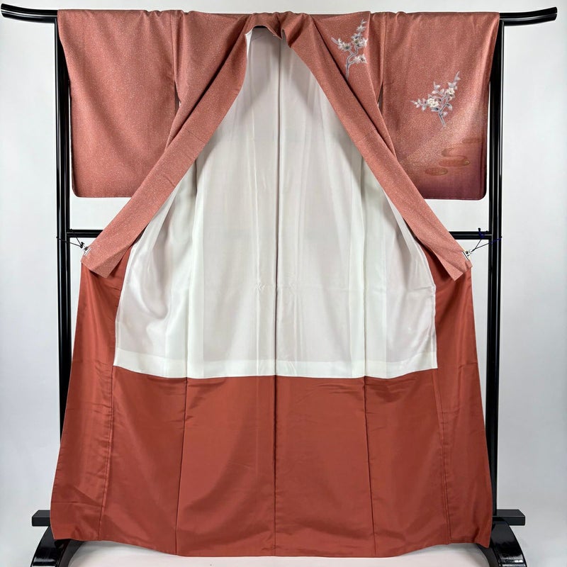 【着物ランク】秀品 【素材】正絹 【身丈】約167.5cm 【裄丈】約67cm 【袖丈】約56.5cm 【袖幅】約34cm 【前幅】約23.5cm 【後幅】約30cm 【サイズ】M 【着物仕立て】袷 【着用時期】10~5月 【状態ランク】ランクB 【着物着用シーン】披露宴、パーティー、式典、食事会、お茶会、正月