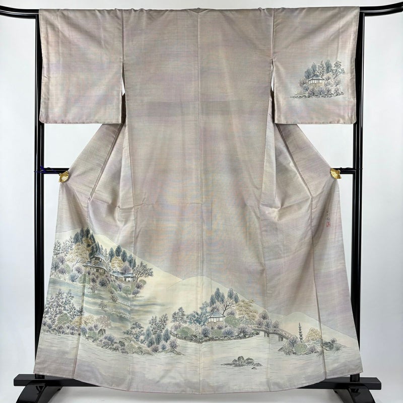 【付下げ】 灰色系 灰紫 秀品 A 約160cm~約169cm 裄丈66cm (M)size 袖丈48cm 7990-9980 美品 二万以下
