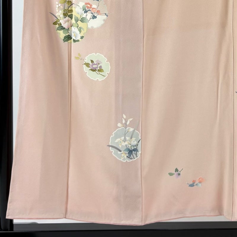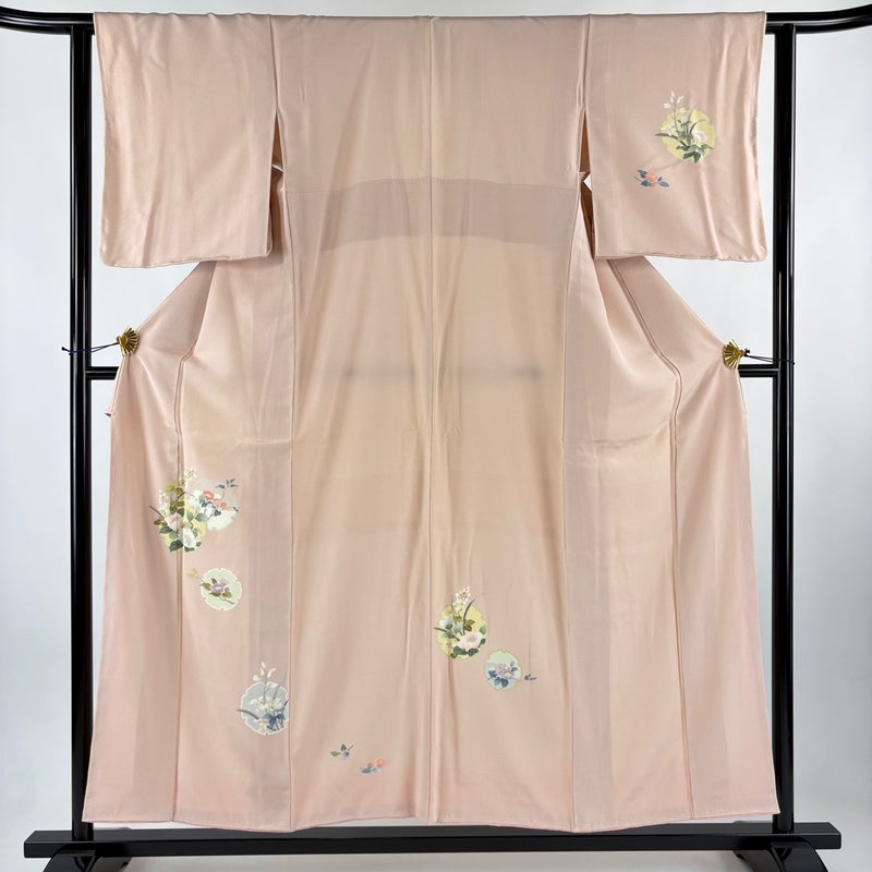 【付下げ】 赤系 薄ピンク 秀品 A 約150cm~約159cm 裄丈62cm以下 (S)size 袖丈49cm 7990-9980 美品 二万以下