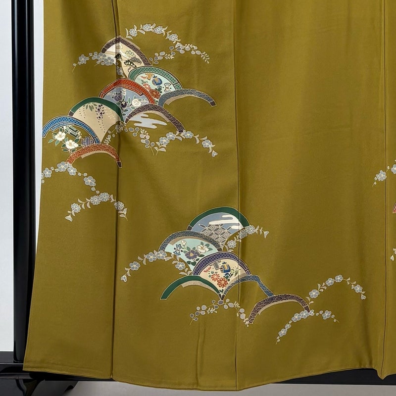 【付下げ】 黄色系 黄土色 秀品 B 約150cm~約159cm 裄丈65cm (M)size 袖丈48cm 4000-7980 二万以下