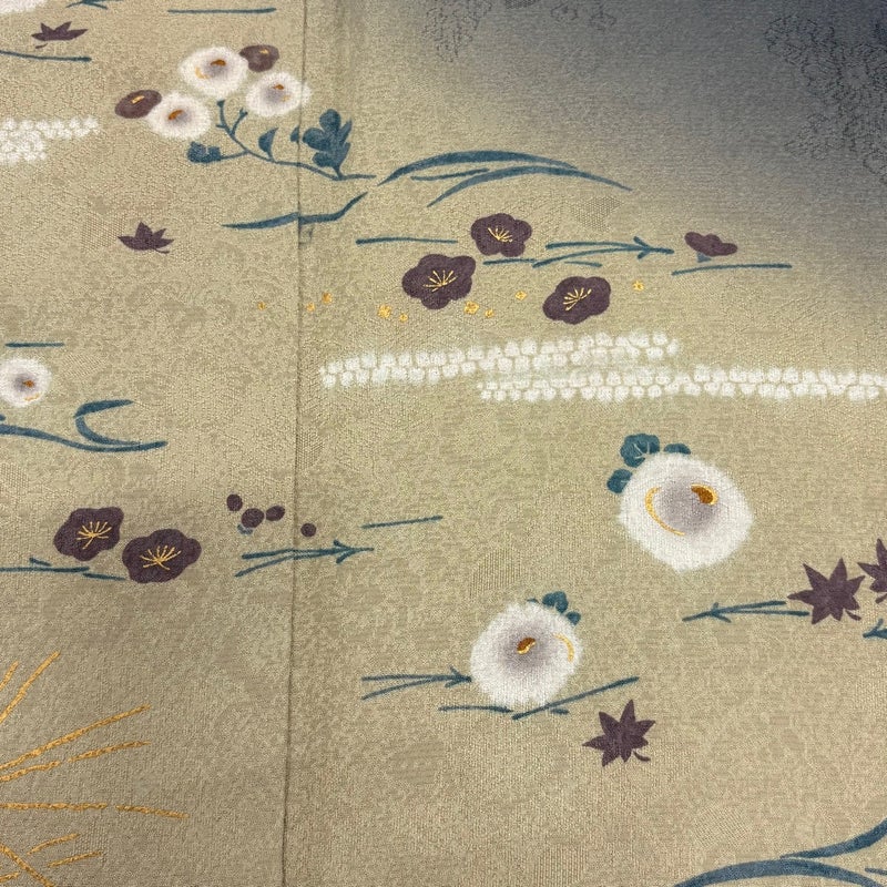 合わせる帯の色柄により、お召しいただく席を選べる付下げです。 帯により印象を変える事の出来る印象のお着物は、様々に活躍してくれることでしょう。 ※身丈・裄丈の縫込みの長さは測っておりません。 表地所々にヤケ、衿周りや両袖口中に汚れ、右衿にシワ、表地所々に金彩の剥がれがございます。 八掛所々にヤケ、胴裏背中心に糸ゆるみがございます。 リユース品としては良い状態で、まだまだご活用頂けると思われます。 ※なお、厳しく商品の状態確認を行っておりますが、記載の汚れ以外にも見落とし箇所がある可能性がある旨ご了承いただけますと幸いです。 沢山の商品の中からご覧いただき誠にありがとうございます。