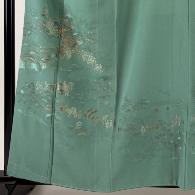 【付下げ】 緑系 薄緑 秀品 B 約150cm~約159cm 裄丈67cm-68cm (L)size 袖丈48cm 4000-7980 二万以下