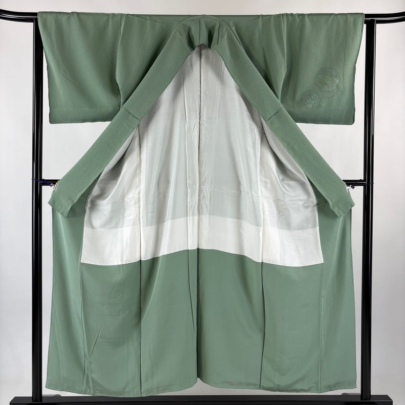 【付下げ】 灰色系 灰緑 秀品 B 約150cm~約159cm 裄丈63cm-64cm (M)size 袖丈46cm以下 4000-7980 二万以下