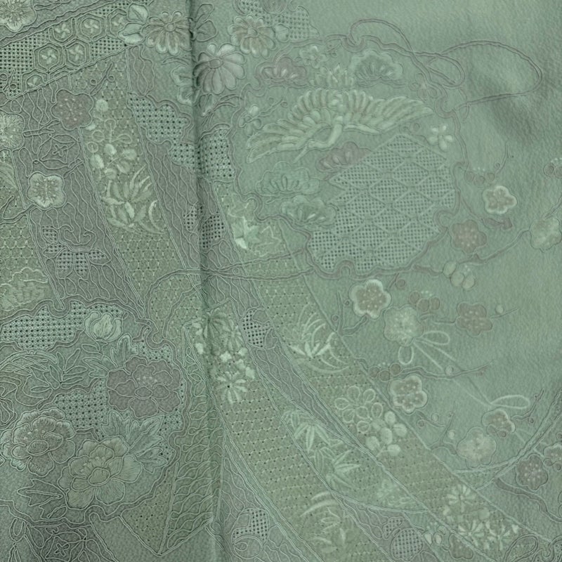 【着物ランク】秀品 【素材】正絹 【身丈】約152.5cm 【裄丈】約64cm 【袖丈】約44cm 【袖幅】約32cm 【前幅】約23cm 【後幅】約29cm 【サイズ】M 【着物仕立て】袷 【着用時期】10~5月 【状態ランク】ランクB 【着物着用シーン】披露宴、パーティー、式典、食事会、お茶会、正月