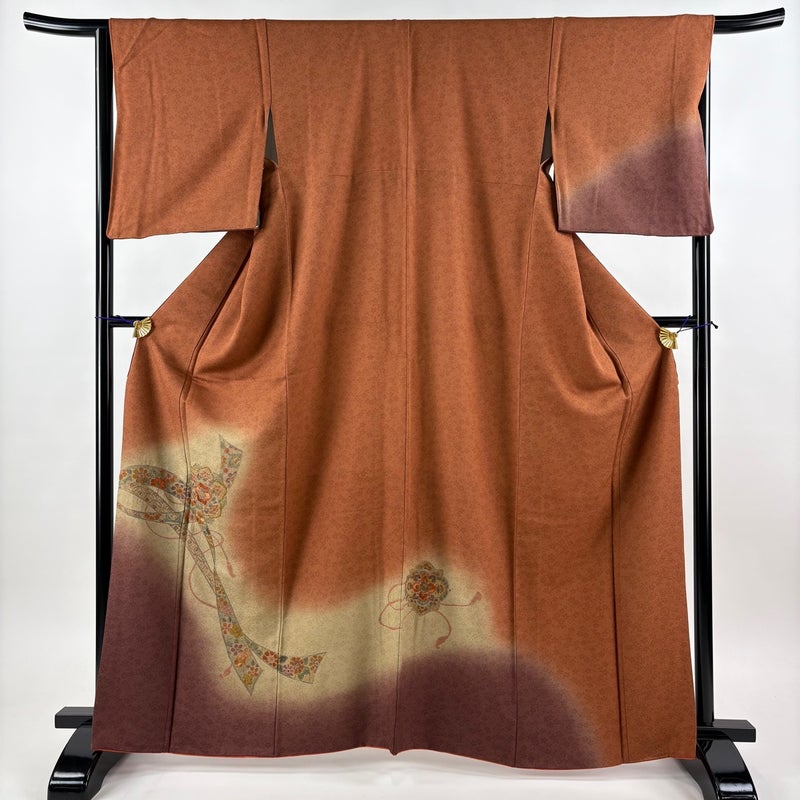 【付下げ】 赤系 赤茶 秀品 A 約160cm~約169cm 裄丈65cm (M)size 袖丈50cm-60cm 7990-9980 美品 二万以下