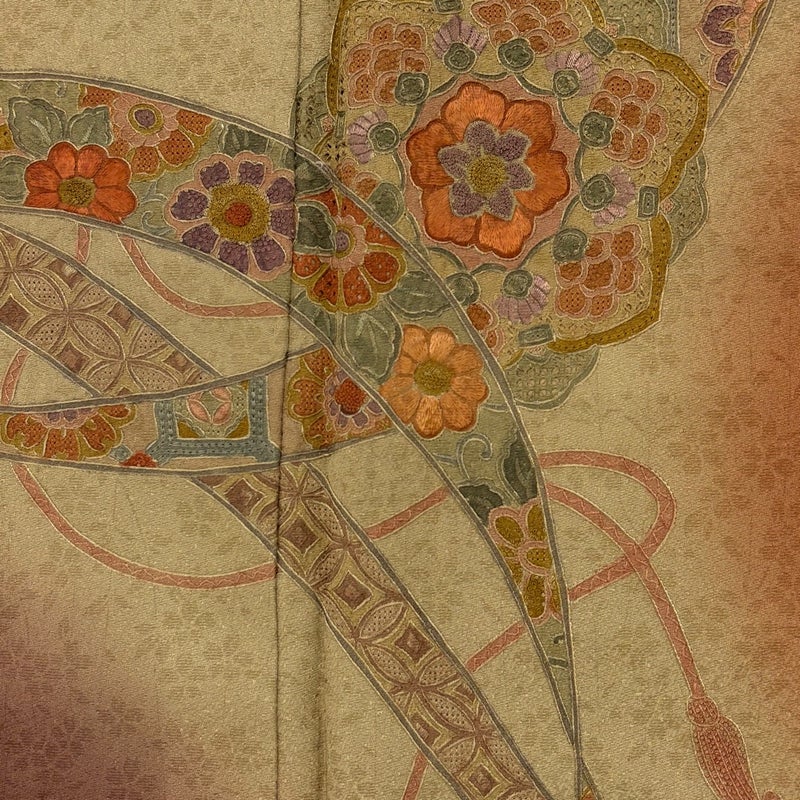 【着物ランク】秀品 【素材】正絹 【身丈】約165.5cm 【裄丈】約65cm 【袖丈】約50cm 【袖幅】約35cm 【前幅】約25cm 【後幅】約30cm 【サイズ】M 【着物仕立て】袷 【着用時期】10~5月 【状態ランク】ランクA 【着物着用シーン】披露宴、パーティー、式典、食事会、お茶会、正月