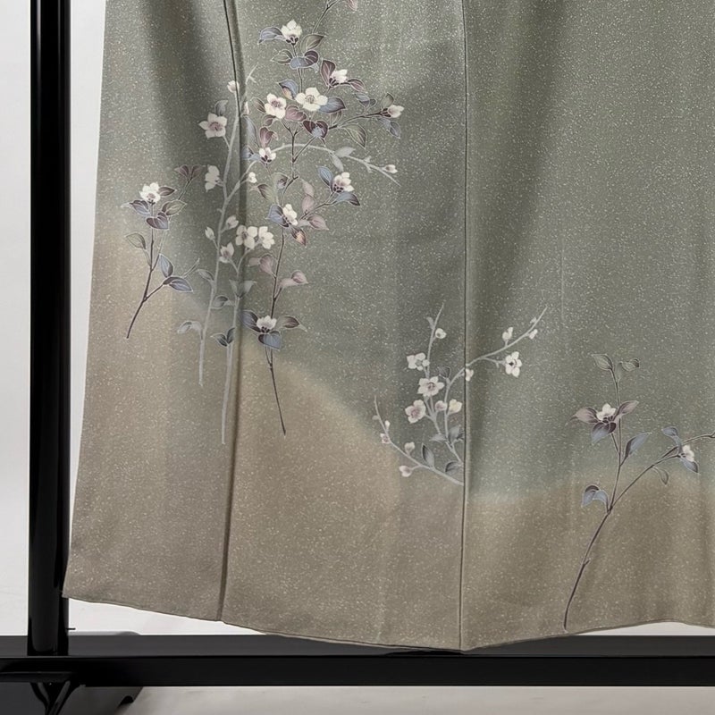 【付下げ】 灰色系 灰緑 秀品 B 約150cm~約159cm 裄丈62cm以下 (S)size 袖丈46cm以下 4000-7980 二万以下