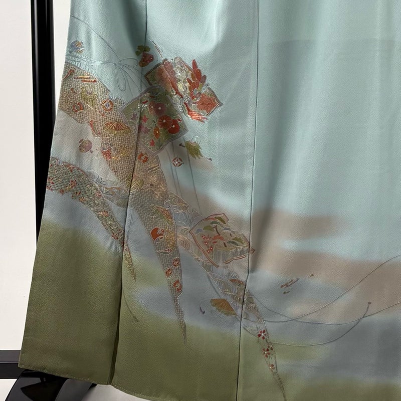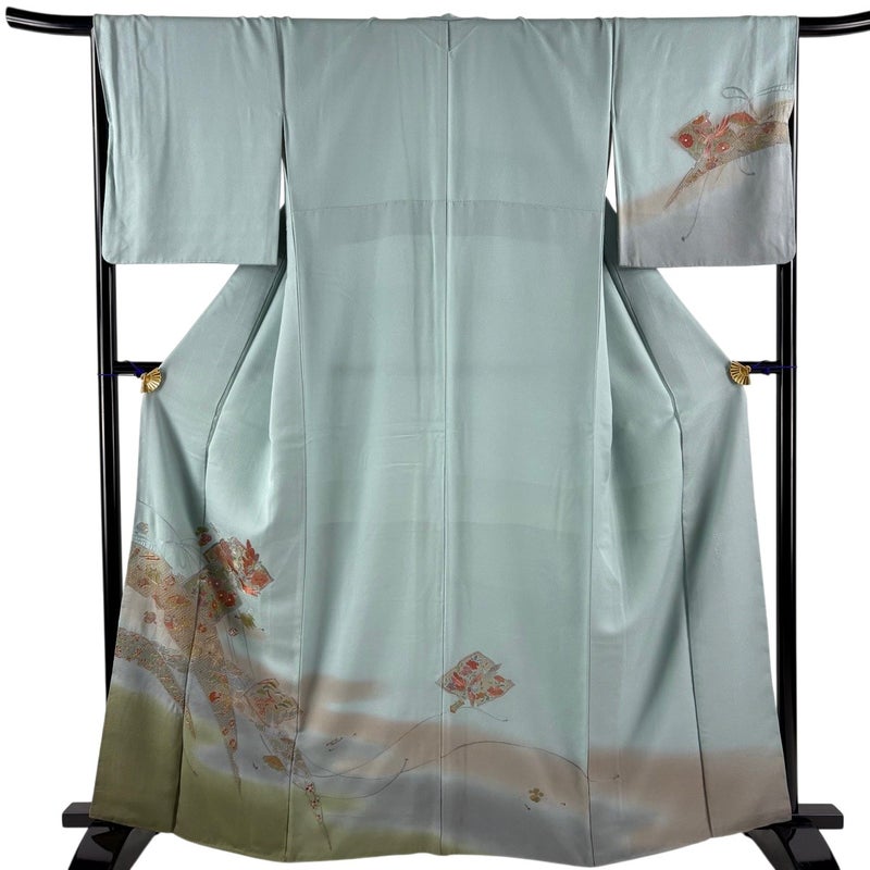 【付下げ】 青系 水色 秀品 B 約160cm~約169cm 裄丈66cm (M)size 袖丈49cm 4000-7980 二万以下