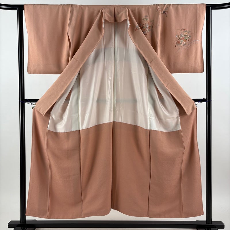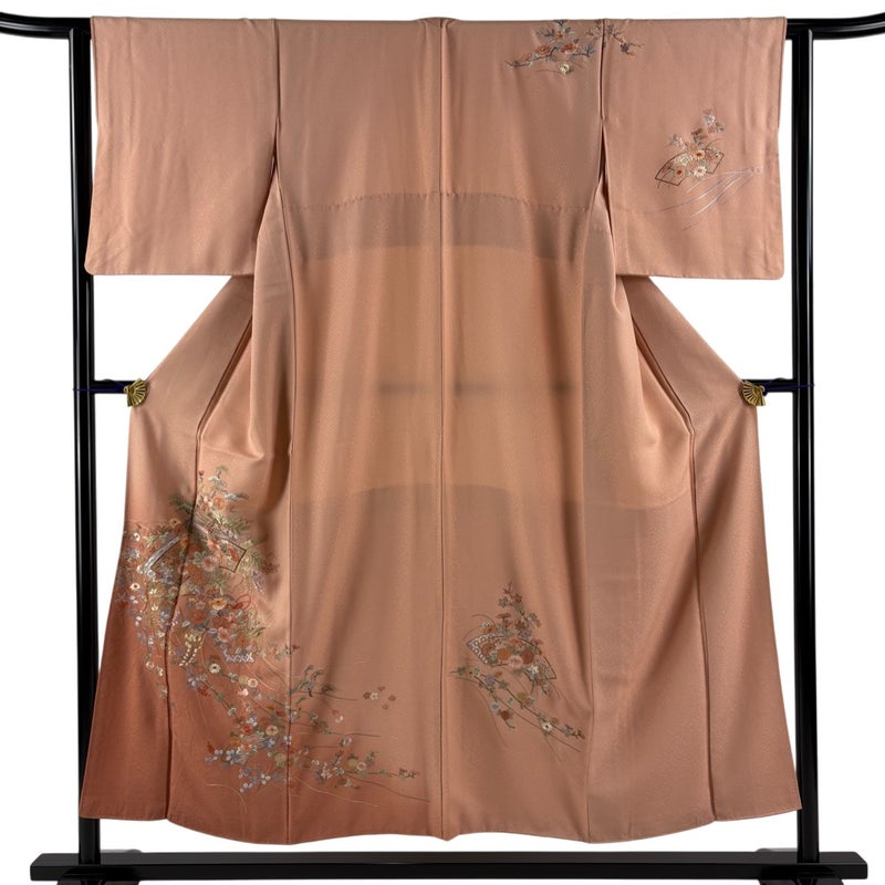【付下げ】 赤系 薄オレンジ 秀品 B 約150cm~約159cm 裄丈62cm以下 (S)size 袖丈48cm 4000-7980 二万以下